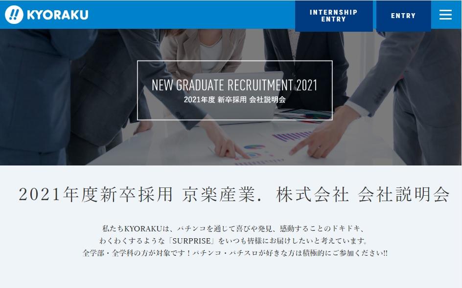 2020年03月09日 ニュース KYORAKU京楽産業.、21年度新卒採用会社説明会の参加者募集 京楽産業.が、2021年度新卒採用会社説明会の参加者を募集している。 21年度の新卒採用は、開発職、営業職、広報宣伝職…