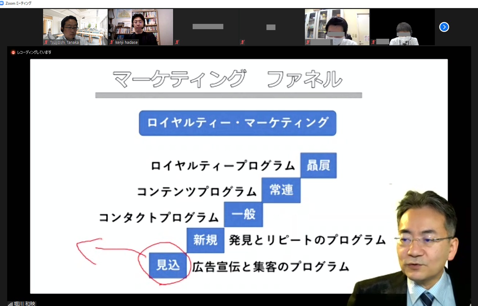 2020年11月16日 ニュース 第二営業部 マーケティング・セミナー開催「いくら集客してもお客様が増えない理由」を解説 ホール企業向けに社員研修を行う第二営業部は11月11日、マーケティング・セミナーをオンラインで開催した。『増客道具の使い…