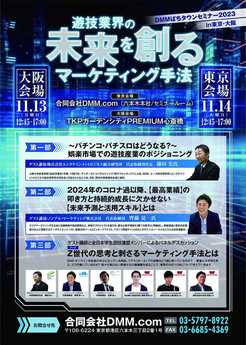 2023年10月20日 ニュース DMMぱちタウンが東京・大阪で学遊連も参加の無料セミナー開催へ DMMぱちタウンは11月13日から14日にかけて、無料セミナー「DMMぱちタウンセミナー2023in東京・大阪」を開催。…