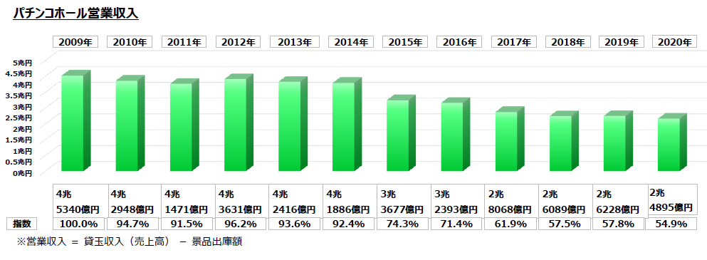2019年09月05日 ニュース PCSA DATA BASE 2019PCSA推計 ホール業界売上高17.5兆円2018年推計値は、売上高、営業収入ともに微増 パチンコチェーンストア協会(PCSA)の推計によると、2018年のホール業界の売上高は17兆4856億円(前年比0.5%…