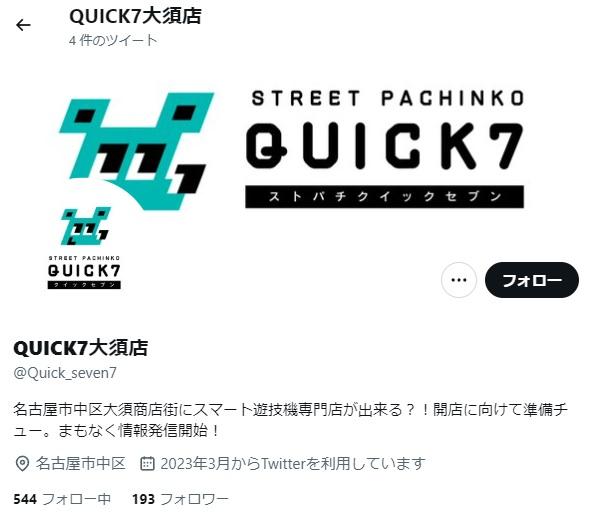 2023年06月23日 ニュース スマート遊技機専門超小型店「QUICK7大須店」 名古屋に今夏開業 愛知県名古屋市の大須商店街で開業準備を進めているスマート遊技機専門店「QUICK7大須店」が今夏グランドオープンする。6…
