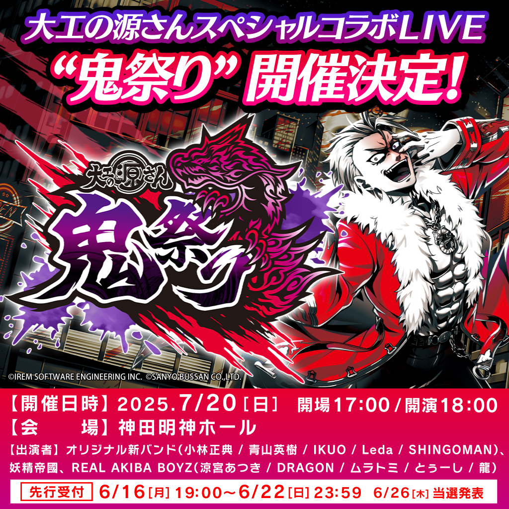 2025年08月07日 ニュース 『大工の源さん』初のスペシャルLIVEイベント『鬼祭り』記念グッズが登場|SANYOマート 三洋は8月7日から、オフィシャルグッズストア「SANYO-MART(サンヨーマート)」で、『大工の源さん』シリーズ初のス…
